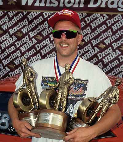 Along the way, he also garnered three world titles, including Super Stock titles in 1998 and 2001 as well as the Comp crown in 2008 at the wheel of Rick Braun’s Econo Altered. Some other highlights include a 50th win in 2007 and a 100th victory in Chicago in 2016, where he won the Super Street title.