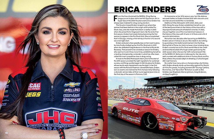 NHRA’s Top 75 Drivers, a keystone program of NHRA’s 75th Anniversary celebration, salutes the Top 75 Drivers in NHRA history, as voted by an elite panel of drag racing experts, and now you can own a keepsake book celebrating the greatest heroes of NHRA Drag Racing.