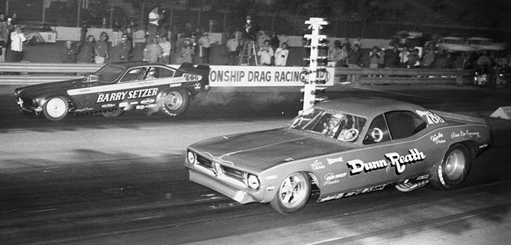 Funny Car veteran Jim Dunn, the star of quarter-mile cult classic film Funny Car Summer, made drag racing history when he became the first Funny Car driver to win an NHRA national event in a rear-engine Funny Car. Dunn drove his back-motored Dunn & Reath Barracuda to victory at the 1972 NHRA Supernationals at Ontario Motor Speedway, winning the final round on Pat Foster’s red-light start and making him the first — and still only (and undoubtedly ever) — national event winner in a rear-engine Funny Car.
