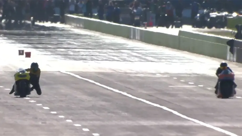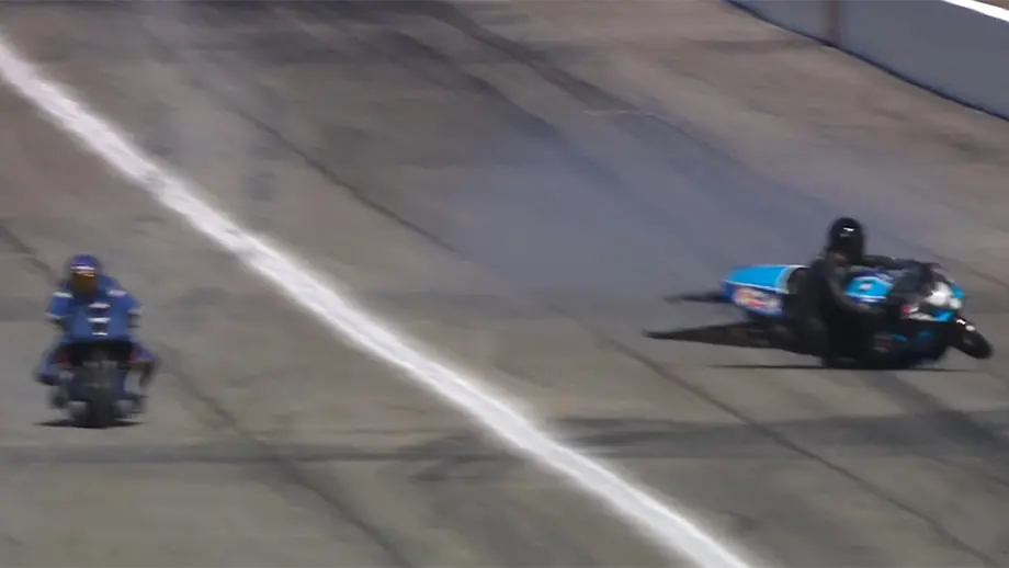 Pro Stock Motorcycle rider Chase Van Sant's close scrape at the FallNationals