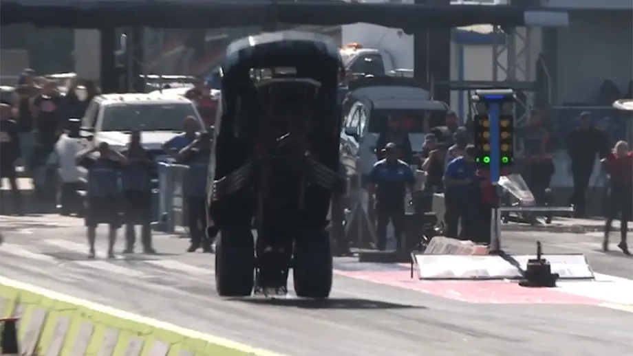 A reported broken wheelie bar led to this high-flying adventure for Top Alcohol Funny Car racer Christine Foster during the semifinals at the Texas NHRA FallNationals.