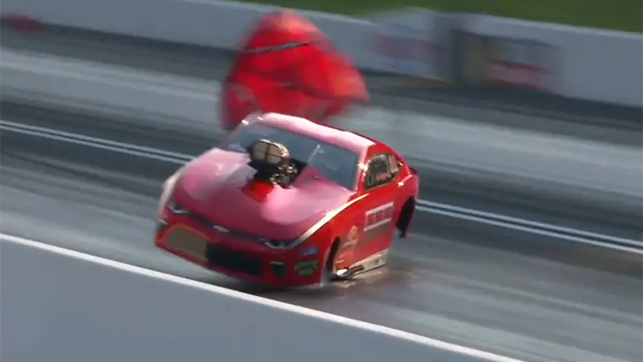 Eventual Funny Car world champion and Tony Stewart Racing wheeled out a special Operation Healing Forces wrap for the Circle K NHRA Four-Wide Nationals in Charlotte, but it lasted just one run as the parachutes failed to deploy at the end of his…