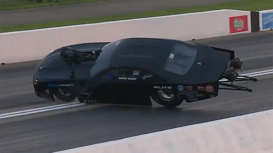 Mason Wright’s Pro Mod crossed the centerline and made contact with the wall during the first round of qualifying in Pro Mod at the Gerber Collision & Glass NHRA Route 66 Nationals presented by Peak Performance at Route 66 Raceway. Wright exited…