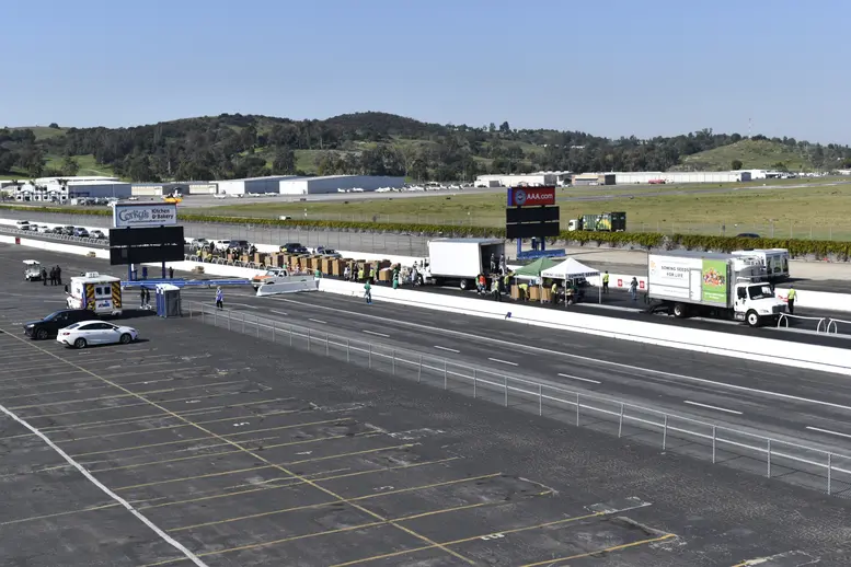 Fairplex opens drive-through food pantry on Pomona’s famous 1/4-mile during COVID-19 pandemic